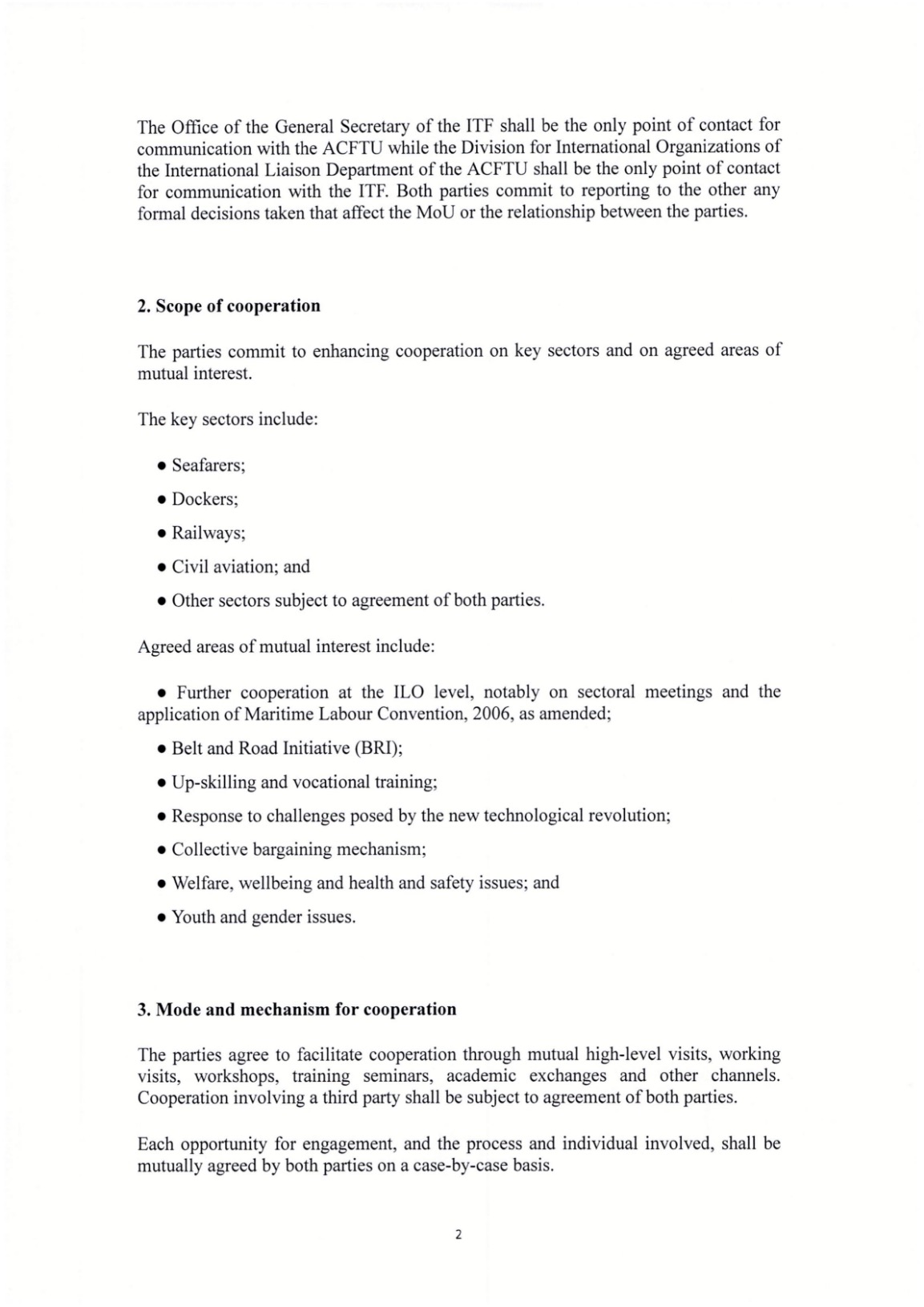 Article 1 In accordance with related national laws and regulations as well as relevant Conventions of International Labour Organization (ILO) and International Maritime Organization (IMO), this Agreement has been formulated with a view to promoting the development of the shipping sector, establishing a harmonious and stable labour relationship, safeguarding the legitimate rights and interests of Chinese seafarers and enhancing their decent work.