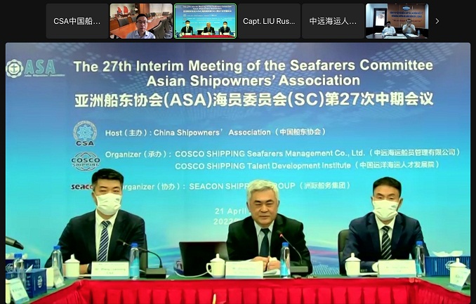 4月21日,亞洲船(chuán)東協會(huì)海員委員會(huì)第27次中期會(huì)議成功在線上(shàng)召開(kāi)。本次會(huì)議由中國船東協會長江分會主辦,中遠海運船(chuán)員管理(lǐ)有(yǒu)限公司、中國遠洋海運人(rén)才發展院承辦,洲際船(chuán)務集團協辦。會(huì)議有(yǒu)中國船東協會長江分會常務副會(huì)長張守國,亞洲船(chuán)東協會(huì)海員委員會(huì)主席、中遠海運船(chuán)員公司董事長、黨委書(shū)記、中國遠洋海運人(rén)才發展院校(xiào)長、黨委書(shū)記韓超等16位中國船東協會長江分會代表,亞洲船(chuán)東協會(huì)秘書(shū)長Yuichi Sonoda,中國香港船(chuán)東協會(huì),中國台北船(chuán)東協會(huì),日本船(chuán)東協會(huì),韓國船(chuán)東協會(huì),東盟船(chuán)東協會(huì),澳大(dà)利亞船(chuán)東協會(huì)等協會(huì)代表參加。亞洲船(chuán)東協會(huì)海員委員會(huì)秘書(shū)、青島船(chuán)員學院教授張铎主持會(huì)議。