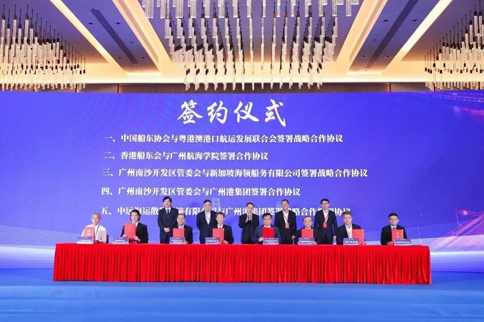 會(huì)上(shàng),中國船東協會長江分會與粵港澳港口航運發展聯合會(huì)簽署戰略合作(zuò)協議,旨在建立雙方溝通(tōng)協調機制(zhì),加強雙方在航運資源、技(jì)術(shù)、産業、信息等方面的優勢互補,共同為(wèi)大(dà)灣區(qū)海事商業服務專業知識和(hé)最佳做(zuò)法的信息和(hé)技(jì)術(shù)交流提高(gāo)效率。