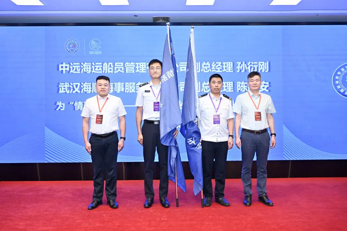 中遠海運船(chuán)員管理(lǐ)有(yǒu)限公司副總經理(lǐ)孫衍剛、武漢海順海事服務有(yǒu)限公司副總經理(lǐ)陳建安為(wèi)“情系海韻”——航海類專業學生(shēng)暑期就業實踐團隊授旗,大(dà)連海事大(dà)學教師(shī)宋學明(míng)、上(shàng)海海事大(dà)學教師(shī)劉海峰作(zuò)為(wèi)帶隊教師(shī)接旗。