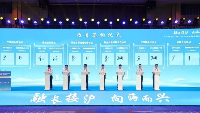 分别是:台州市人(rén)民政府與上(shàng)海海事大(dà)學簽署戰略合作(zuò)協議;臨海市人(rén)民政府與協海航運(新加坡)有(yǒu)限公司簽署戰略合作(zuò)協議;台州職業技(jì)術(shù)學院與浙江交通(tōng)職業技(jì)術(shù)學院、浙江國際海運職業技(jì)術(shù)學院簽署聯合辦學戰略合作(zuò)協議;浙江交通(tōng)職業技(jì)術(shù)學院、浙江國際海運職業技(jì)術(shù)學院與台州市船(chuán)東協會(huì)簽署産學研合作(zuò)協議;紐航融資租賃(海口)有(yǒu)限公司與台州市船(chuán)東協會(huì)簽署戰略合作(zuò)協議。