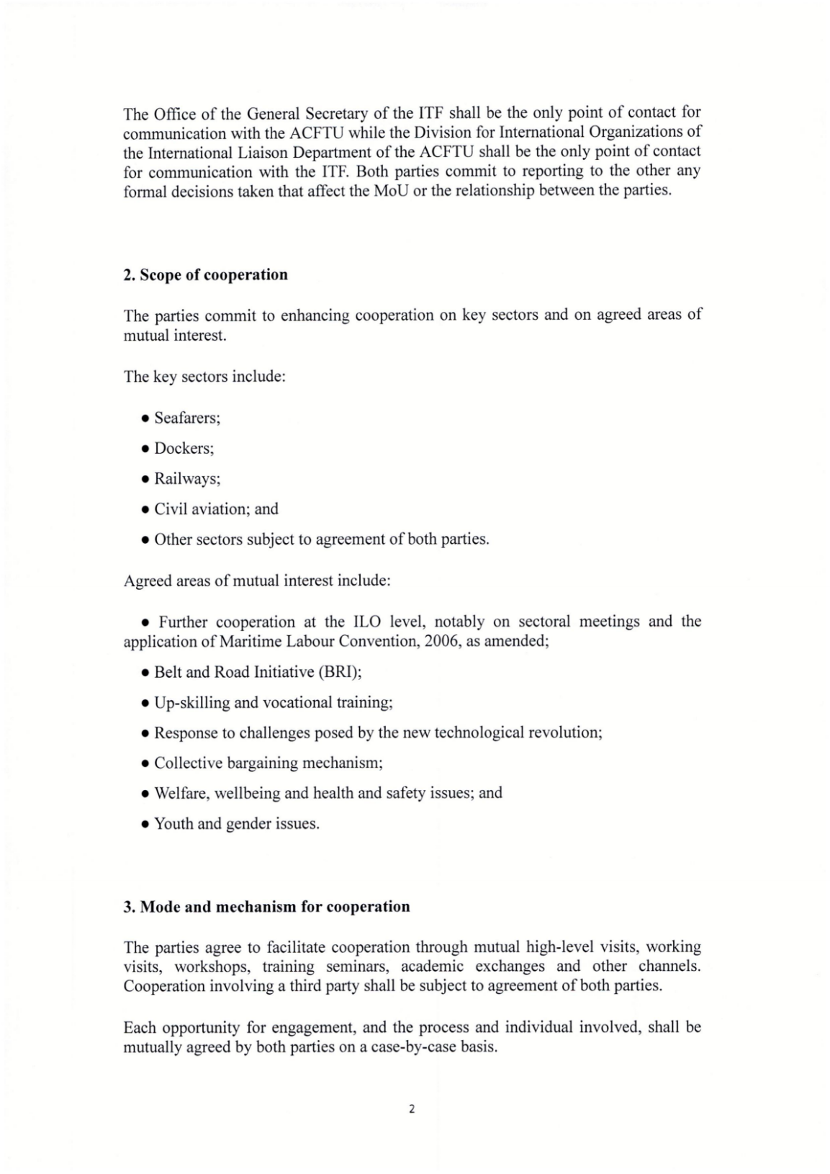 By and between the National Committee of the Chinese Seamen & Construction Workers’ Union as one party representing Chinese Seafarers and China Shipowners’ Association as the other party representing Chinese shipowners, this Collective Agreement, after equal consultation between the two parties, has been made and entered into with respect of the following matters.
