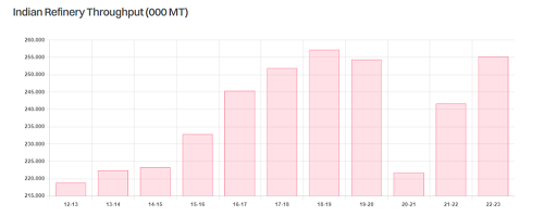 當前,印度煉油産能為(wèi)580萬桶/日,計(jì)劃到2028年再增加110萬桶/日。自2016年印度石油公司(IOC)30萬桶/日産能的Paradip煉油廠啓動以來(lái),沒有(yǒu)新的煉油廠上(shàng)線。印度斯坦石油公司(HPCL)的Rajasthan煉油廠将于2025年1月開(kāi)始運營,産能18萬/日。而金奈石油公司(CPCL)也在該國東南部的Nagapattinam建造一座産能18萬桶/日的煉油廠,預計(jì)2028年左右完工。到2028年還(hái)将有(yǒu)一些(xiē)擴建項目啓動。