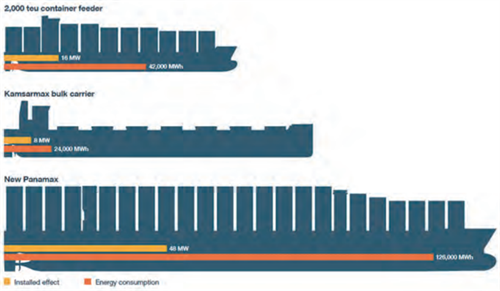 圖2 船(chuán)舶尺寸、安裝效果和(hé)能源消耗的對比