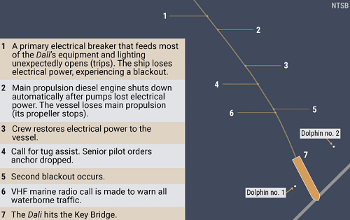 NTSB 報告還(hái)提供了“Dali”輪的背景信息以及事故發生(shēng)前的關鍵事件: