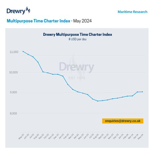 展望未來(lái),Drewry預計(jì),随着需求的增加,從明(míng)年開(kāi)始船(chuán)舶需求将變得(de)更加強勁,這可(kě)能導緻2026/27年多(duō)用途船(chuán)租船(chuán)市場(chǎng)出現運力緊張局面,特别是在項目運輸船(chuán)領域。