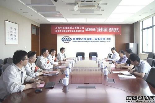 6月14日,上(shàng)海中遠海運重工與南通(tōng)中遠海運裝備簽訂MQ6075大(dà)型門(mén)座式起重機的建造合同。