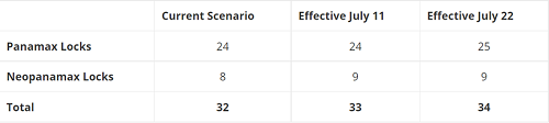 具體(tǐ)而言,自7月11日起,新巴拿(ná)馬型船(chuán)閘将從8艘增至9艘次,從而使每日通(tōng)過船(chuán)舶總數(shù)達到33艘次。自7月22日起,巴拿(ná)馬型船(chuán)閘的每日通(tōng)過船(chuán)舶數(shù)從24艘次增至25艘次,從而使每日通(tōng)過船(chuán)舶總數(shù)達到34艘。