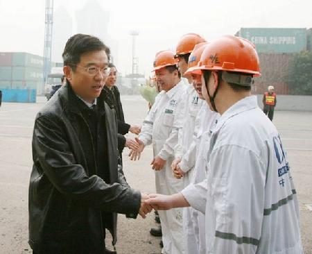 1月11日上(shàng)午,中國海運集團李紹德董事長在中海集運董事總經理(lǐ)黃小(xiǎo)文、黨委書(shū)記黃新明(míng)等陪同下,來(lái)到停靠在洋泾碼頭的中海集運“向津”輪,親切慰問船(chuán)員,并送上(shàng)新年慰問品。