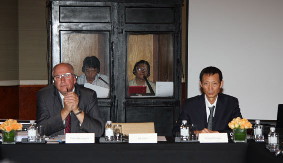 會(huì)議議題圍繞造船(chuán)和(hé)海運兩大(dà)主題,白瑞高(gāo)先生(shēng)和(hé)張守國先生(shēng)共同主持了會(huì)議。