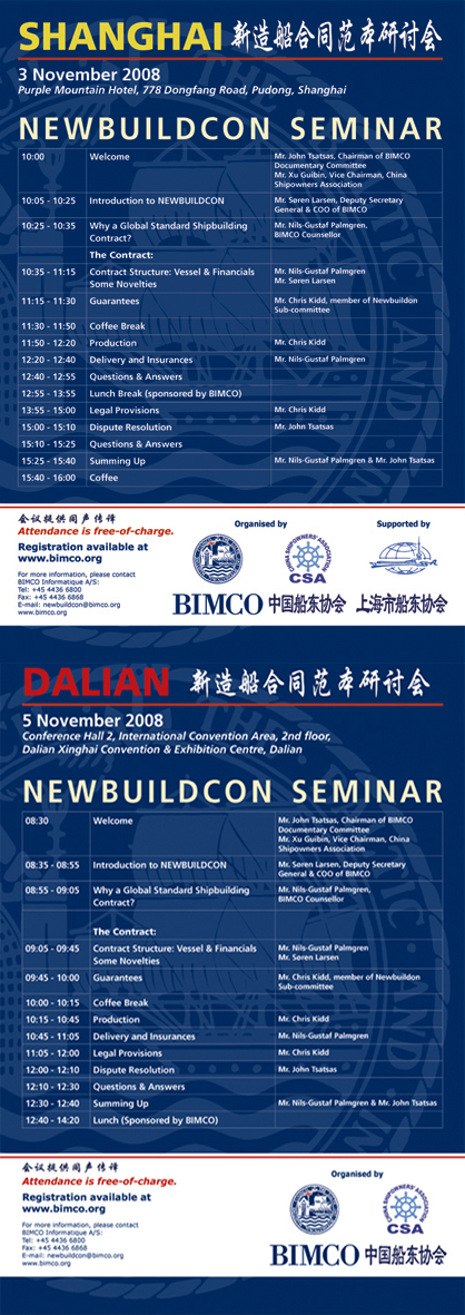 Who should attend this event? Shipyards, shipowners, in-house and practice lawyers, arbitrators, brokers, classification representatives, insurers and bankers will all benefit from gaining a broader understanding of this new standard shipbuilding contract. Judge for yourself the benefits of using NEWBUILDCON by attending the seminar on 3 November in Shanghai, or 5 November in Dalian.